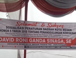 Medan – Anggota DPRD Kota Medan Fraksi PDI Perjuangan, David Roni Ganda Sinaga,SE, menggelar kegiatan sosialisasi Peraturan Daerah (Perda) Kota Medan Nomor 5 Tahun 2015 tentang Penanggulangan Kemiskinan bersama DPRD dan Pemerintah Daerah Kota Medan.