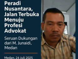 Medan, Nusantara Expos— Dunia hukum semakin terbuka bagi masyarakat luas berkat program Pendidikan Khusus Profesi Advokat (PKPA) dan Ujian Profesi Advokat (UPA) yang diselenggarakan oleh Peradi Nusantara. Salah satu tokoh masyarakat yang menyambut baik program ini adalah M. Junaidi, warga Kota Medan, yang dengan semangat menyatakan dukungan dan minatnya untuk turut serta mengajak masyarakat lainnya mengenal dan merintis jalan menuju profesi advokat.Medan, 24 Juli 2025