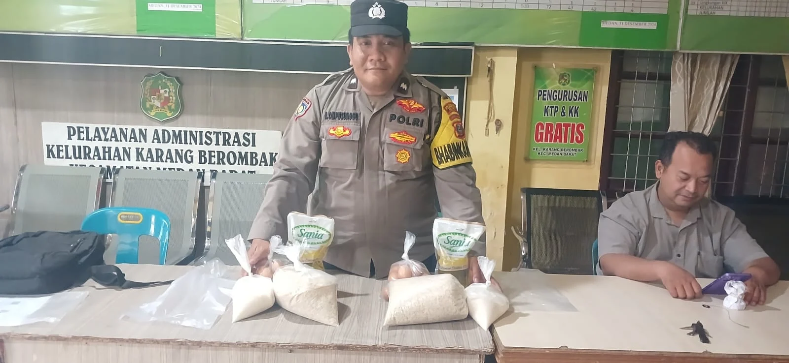 Dalam rangka program Jumat Berkah, Bhabinkamtibmas Kelurahan Karang Berombak, Aipda R. Ompusunggu, melaksanakan kegiatan sosial dengan menyalurkan bantuan sembako kepada warga kurang mampu di Kelurahan Karang Berombak, Kecamatan Medan Barat, wilayah hukum Polsek Medan Barat, pada Jumat (20/2/2026).