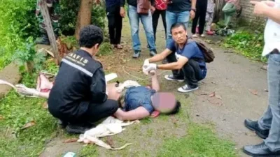 DOKUMENTASI: sosok Mayat pria tanpa celana ditemukan di anak sungai (parit) Jalan Karya, Medan Barat,…