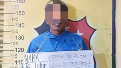 Arifin alias Holmes (53), pelaku tindak pidana penganiayaan yang mengakibatkan korban meninggal dunia Nusantaraexpos.com…