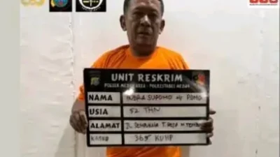 Tersangka Indra Supomo alias Pomo terduduk di kursi roda usai kedua kakinya ditemb4k polisi. …
