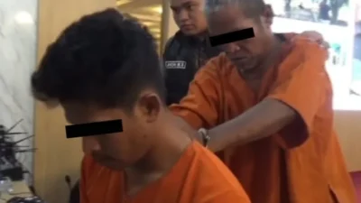 Dokumentasi saat ditangkap ayah dan anak mencabuli keponakanya di polres padangsidimpuan . Nusanatara …