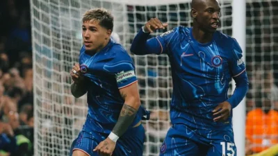 Foto arsip – Gol tunggal Enzo Fernandez (kiri) memastikan kemenangan penting bagi The Blues sekaligus…