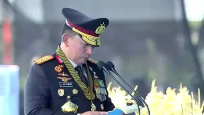 Tangkapan layar siaran langsung Div Humas Polri ketika Kapolri Jenderal Polisi Listyo Sigit Prabowo memberikan…